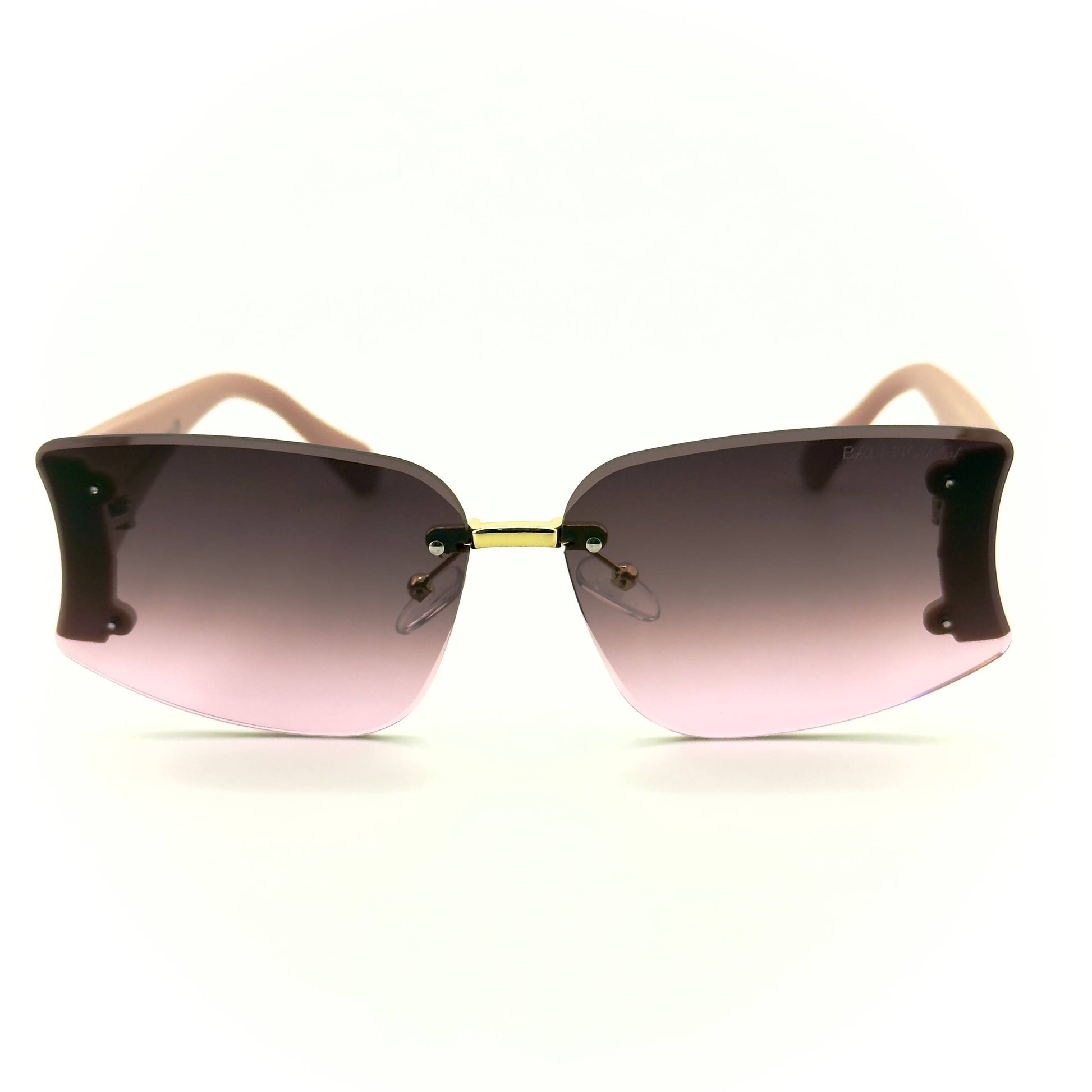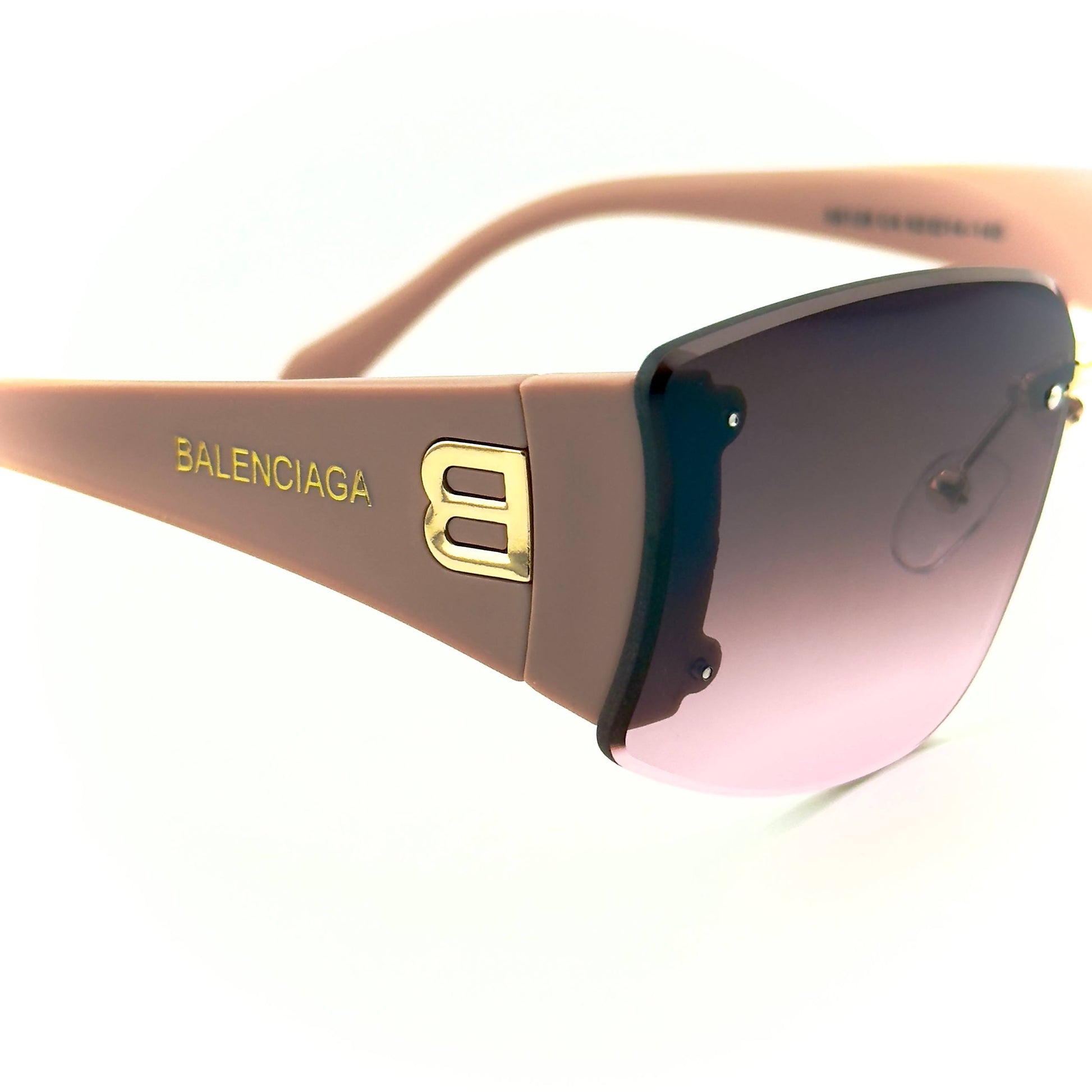Bold and glam. These rimless Balenciaga butterfly shades feature blush-pink temples with the signature gold “B” logo and a slim gold bridge. Rose-to-smoke gradient lenses add a soft, luxe vibe while keeping your eyes comfy in bright light. Comes with full packaging.
