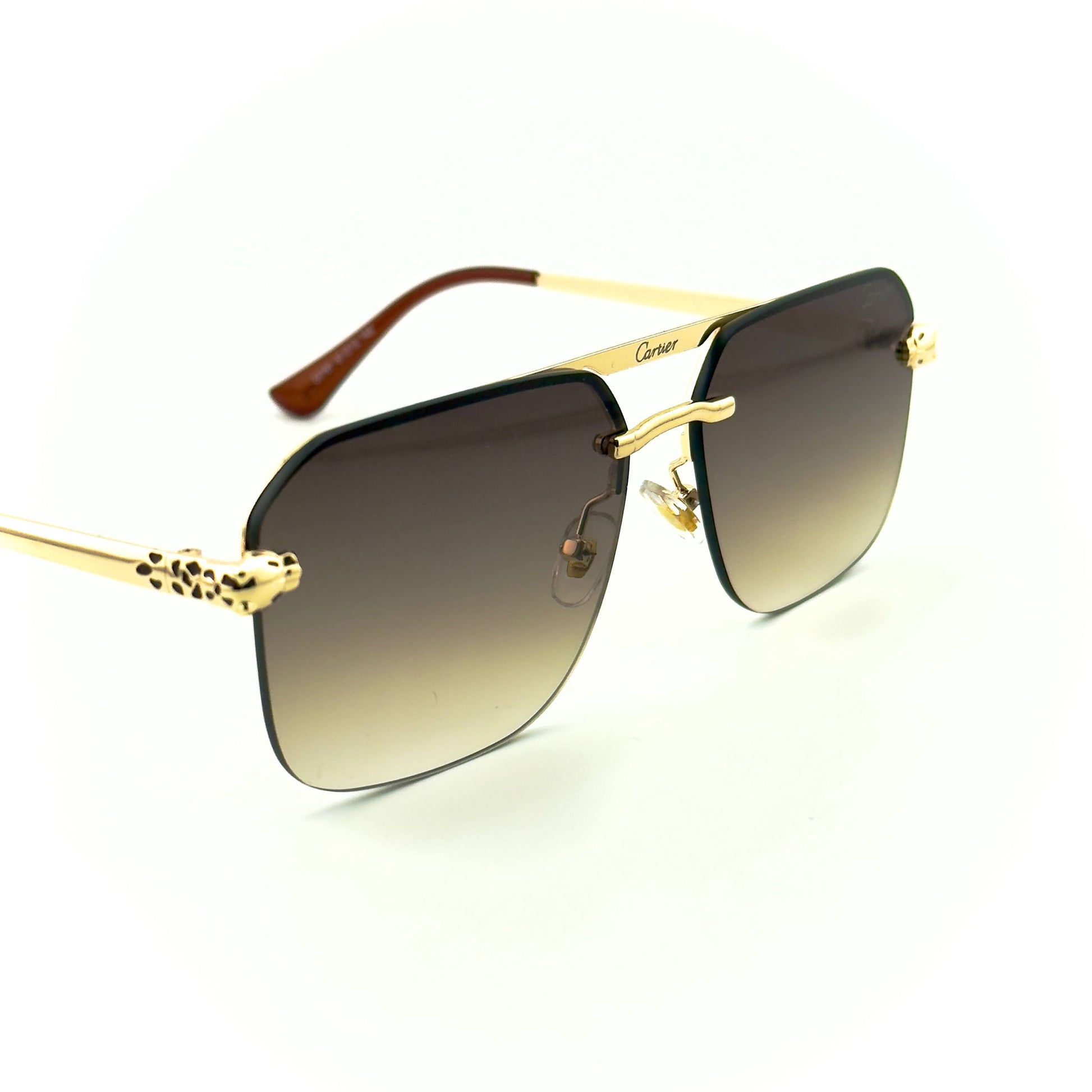 Experience timeless sophistication with the Cartier Panthère Elegance. Featuring rimless square lenses, a golden bridge, and the iconic panther detail on the temples, these sunglasses are the perfect balance of luxury and refinement.