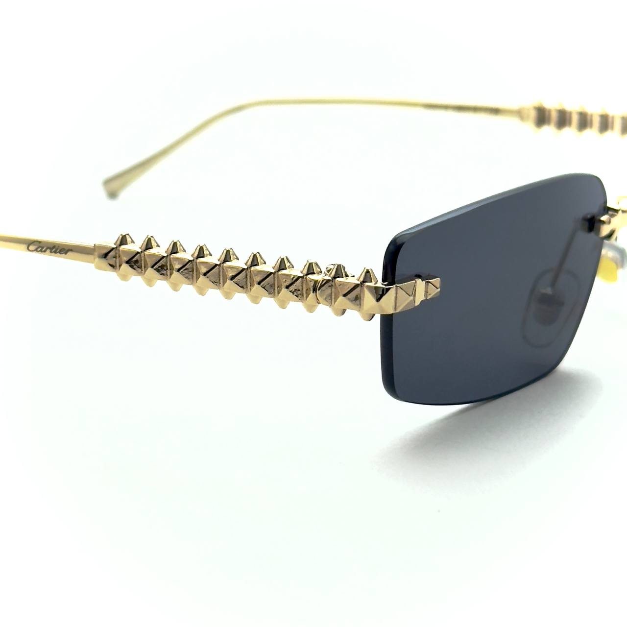 These sunglasses are super cool and stylish. They have black lenses and gold temples that make you look awesome. Perfect for sunny days!
