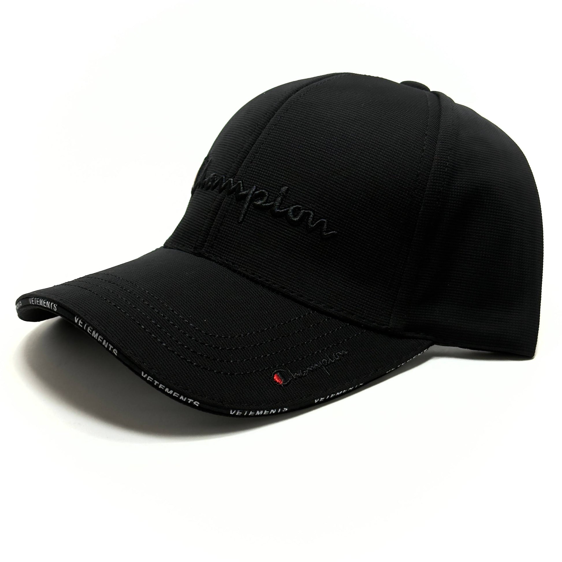 This Champion x Vetements black cap features a bold embroidered Champion logo in Black and red thread across the front, giving it a standout sporty look. The brim is detailed with subtle “Vetements” text embroidery, adding a designer edge. Made from durable fabric with a structured shape and adjustable back strap, it delivers comfort and style in equal measure — ideal for streetwear lovers and everyday wear.