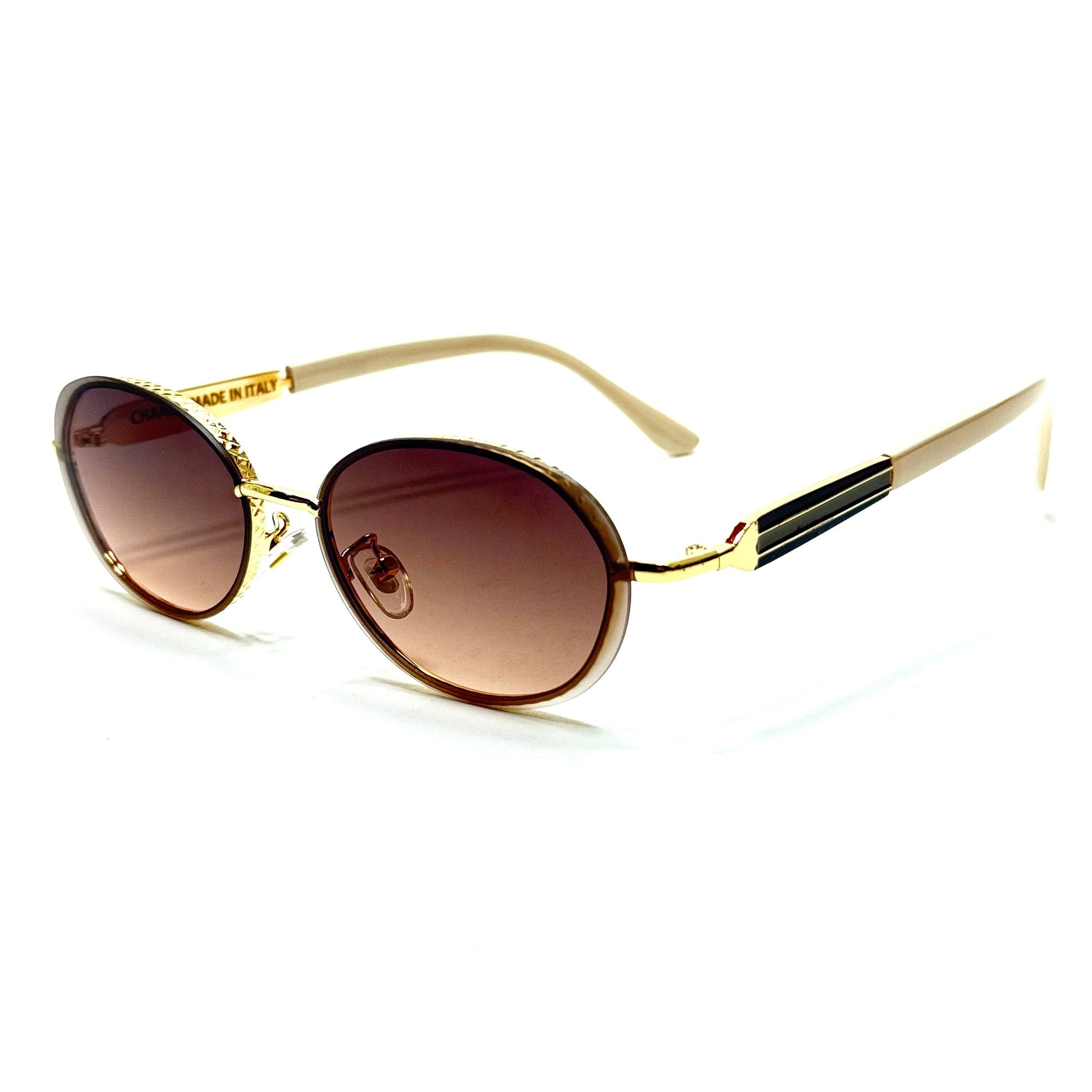 Crafted with the unmistakable Parisian refinement of Chanel, the Soleil Éternel sunglasses blend timeless femininity with modern couture detailing. The carved gold frame radiates subtle brilliance, while the rose-brown gradient lenses create a warm, flattering glow on every skin tone. Slim temples with black enamel accents complete the silhouette, offering elegance from every angle.