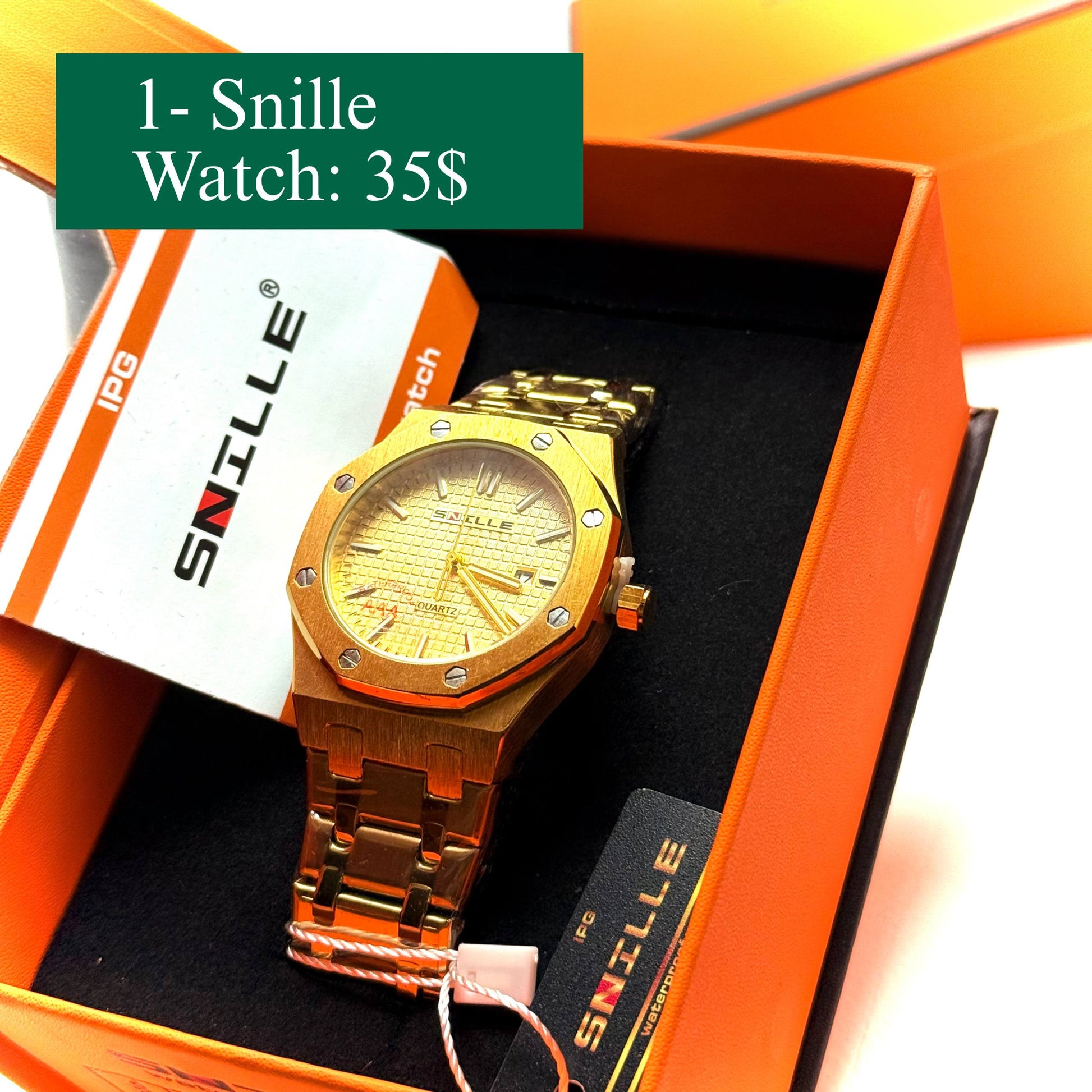 • Gold-tone SNILLE waterproof watch with luxury finish