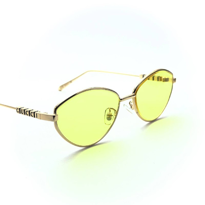 The Gucci Sunburst Charm sunglasses bring retro flair with a twist — featuring striking yellow lenses, slim gold-tone cat-eye frames, and Gucci’s signature open-logo temples. Designed to turn heads and spark envy.